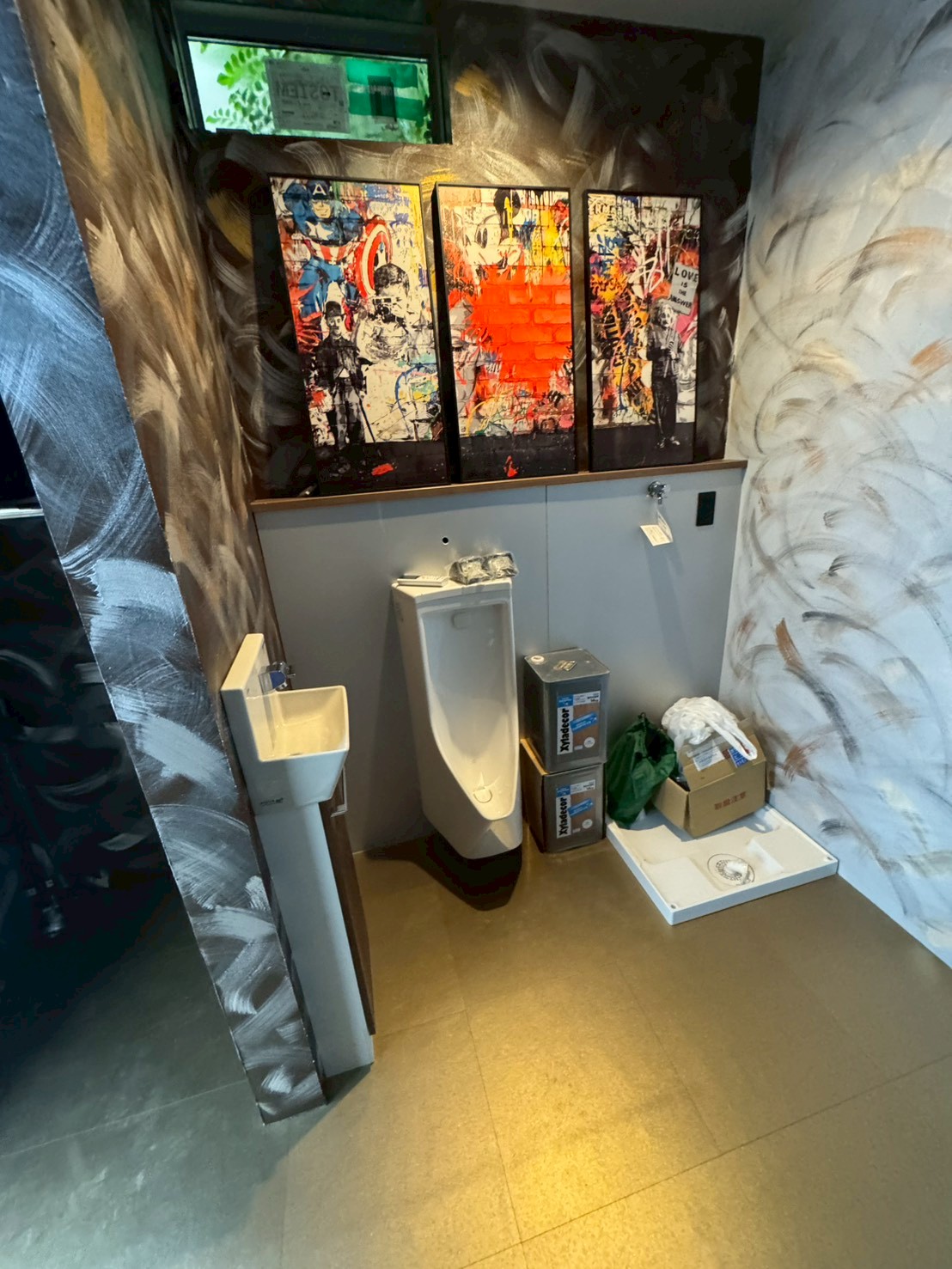 男性用便器、クローゼット、エアコン、多数のコンセントを備え、照明は1階・2階ともに自動点灯。