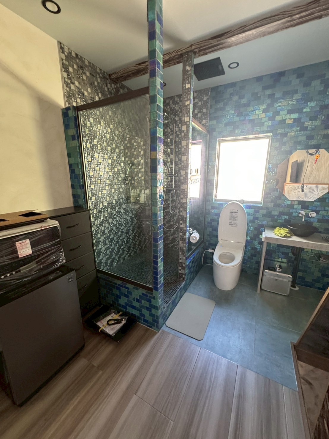 シャワールームもトイレも仕切りがなく、究極の一人暮らし専用の道楽部屋です。